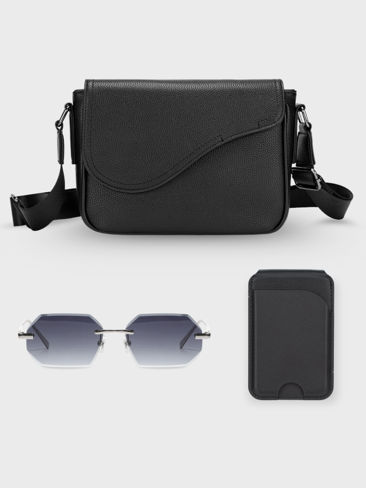 Een moderne, minimalistische set die je dagelijkse look compleet maakt. Perfect afgestemd op elkaar en voordeliger dan alle items los kopen.
