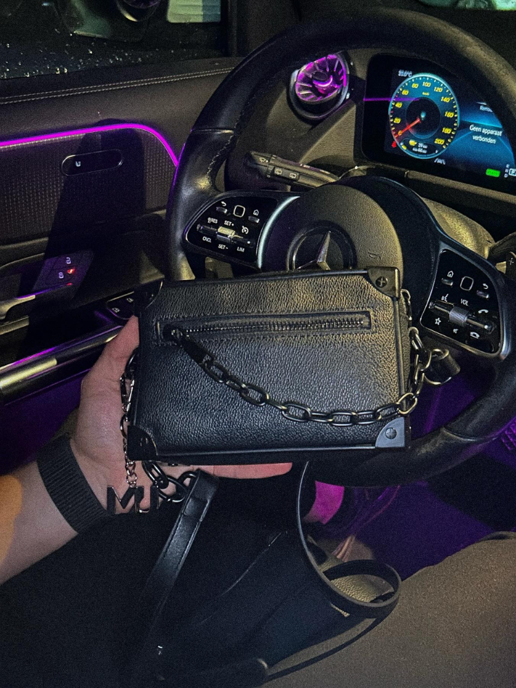 Compacte unisex tas van stevig leer.